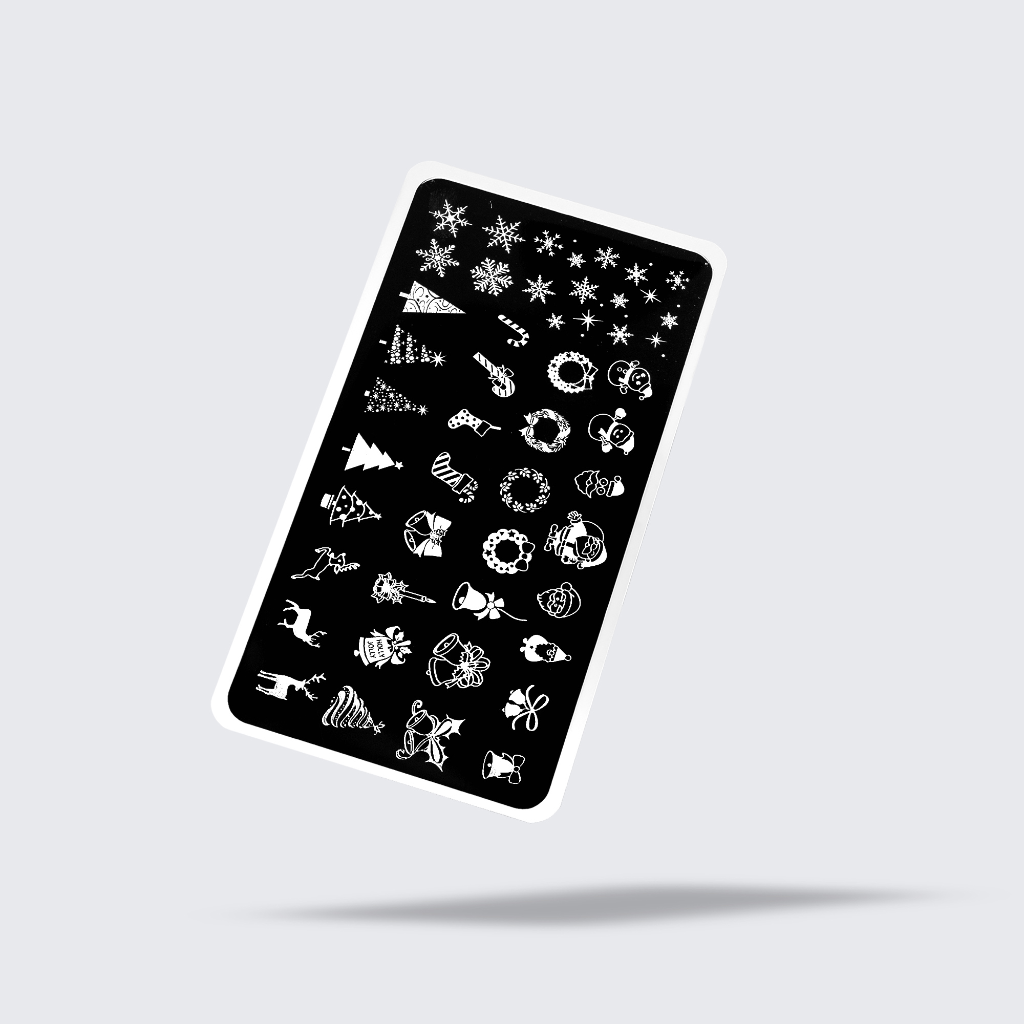 All the icons of the most wonderful time of the year on one stamping plate, including plenty of unique snowflakes, wreaths, Santa Clauses & more!